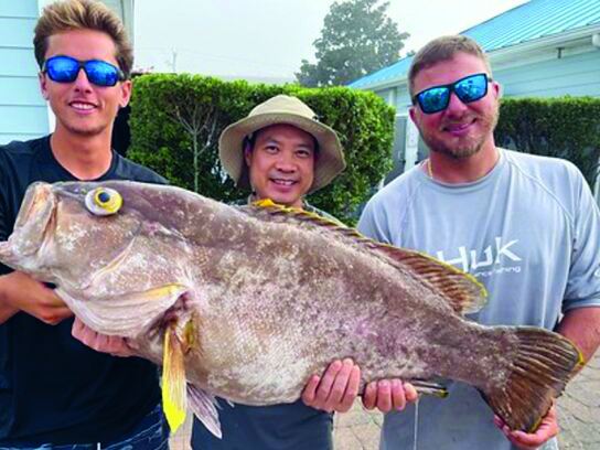 While fishing in Poorman’s Canyon with Captain Chase Eberle of Chasin’ Tides Charters, Jian Feng Li brought a massive yellowedge grouper to the boat after it ate a strip of false albacore. The catch was taken to Sunset Marina in Ocean City, where a Maryland Department of Natural Resources biologist confirmed the species. There, the 43-inch fish weighed in right at 38 pounds, just about 11 pounds short of the 48.6-pound world record.