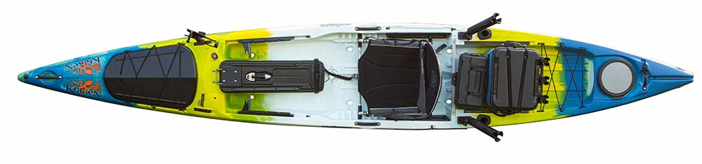 For a smaller kayak, the Tetra Angler has big storage, with two flush-mount rod holders and a Mod Pod II center hatch that allows easy access to rods from a seated position. The Comfort Hybrid Seat provides excellent back support.