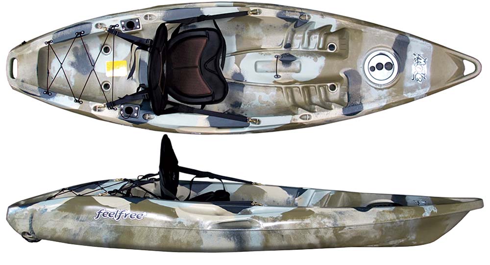 The Move Angler is the perfect kayak for kids and smaller paddlers getting into the sport of kayak fishing. It comes equipped with all the great features paddlers have come to expect in a Feelfree kayak: molded-in handles, recessed fittings, and the patented Wheel in the Keel. Its “tri-hull” design offers great stability and efficient tracking while paddling. The hull weighs only 42 pounds, making it very easy for a solo paddler to maneuver on or off the water—even a younger paddler.