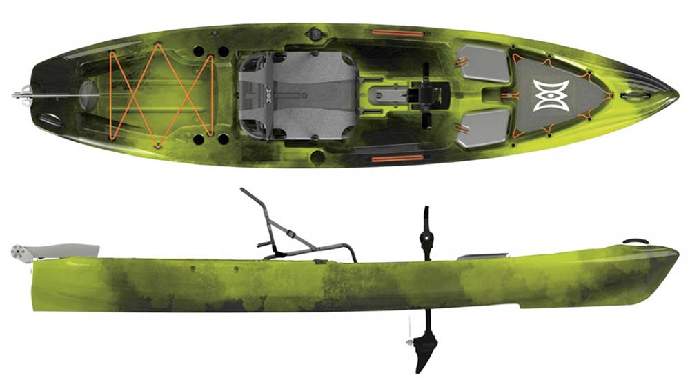This offshore-capable hull is designed for quick moves and chasing down schools of fish. The Vantage CT seat allows for comfortable all-day fishing, and the MirageDrive keeps hands free for fishing and rigging. As with all 2017 model year Mirage kayaks, the Revolution comes with the MirageDrive 180.