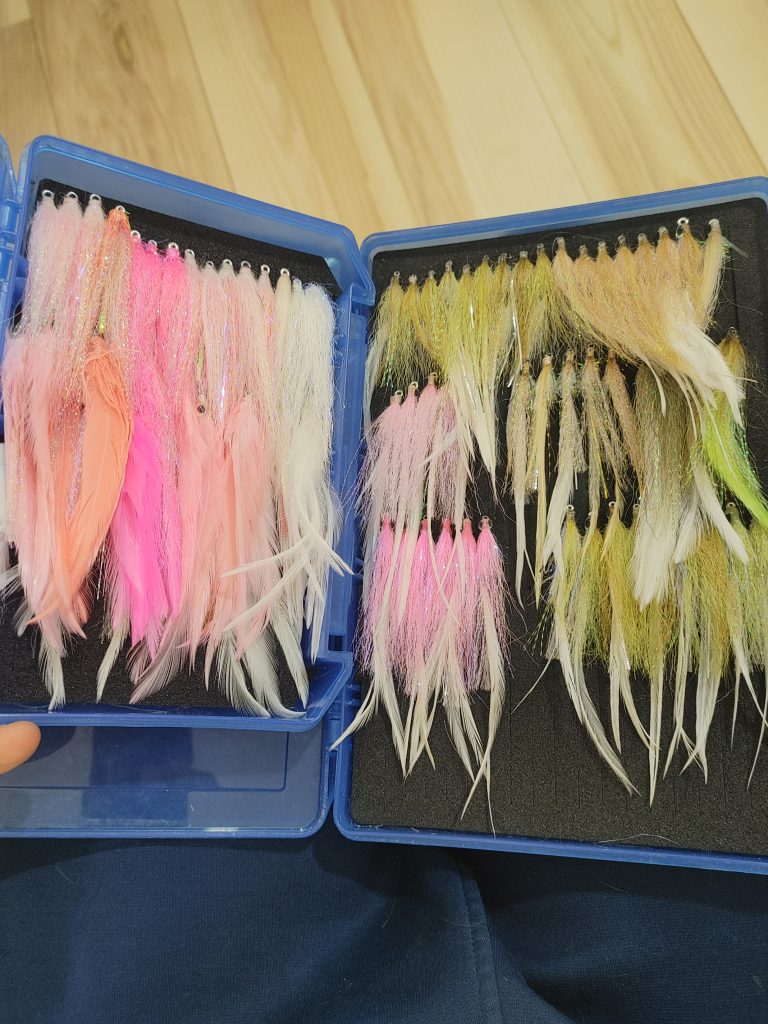 When fishing a minnow fly that has an accurate translucency profile of the pearlescent air sac, and overall body profile that is rolling and flashing with a gentle sink rate when paused, the fly is likely to be intercepted by fish whether it is being moved rapidly or not. Stunned minnows are not fleeing at all, and those are often the first meals the albies will choose because they’re the easiest grab.