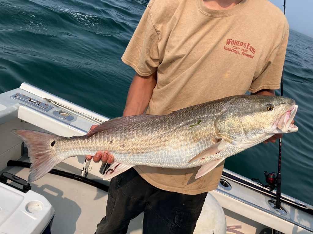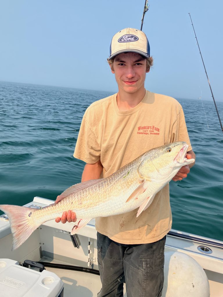 On Thursday, August 15, Captain Sam Crafts of Take A Chance Charters in Harwich Port, MA, left the dock early in the morning with Camden Stride—a native Vermonter who booked his first-ever saltwater fishing trip in pursuit of a mighty bluefin. Compared to the placid lakes and ponds of the Green Mountain state, the tuna fishing grounds off Cape Cod are an overwhelmingly different world. Whether it be a bluefin, a striper, or even a scup, any fish that Stride caught on his trip to Cape would mark a successful introduction to saltwater fishing. The last thing anyone expected, though, was to hook and land a red drum, a species more common in southeastern waters, on Cape Cod.