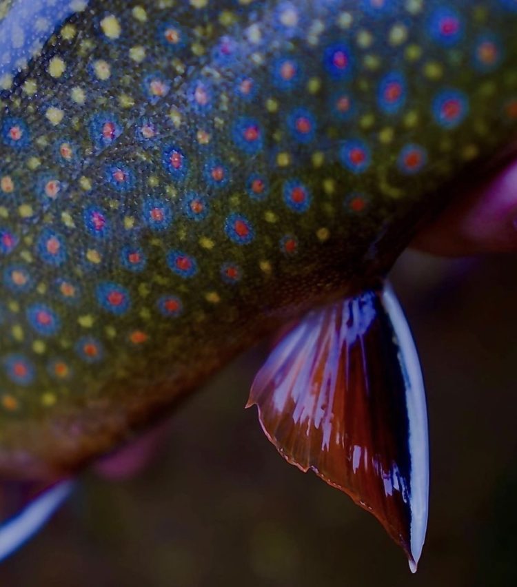 After starting out with scrap cherrywood from a Vermont farm, G10 seemed ambitious, especially because of the toxicity of airborne fiberglass particles. Regardless, Mangiafico put in the time to learn about fiberglass and his efforts paid off. G10 opened a new realm of creativity, meaning he could now replicate complex visual patterns without sacrificing strength. His most noted knife iteration was created after dropping brass pins into a G10 handle, forming a nebula of speckles as seen on Mangiafico’s beloved native brook trout.