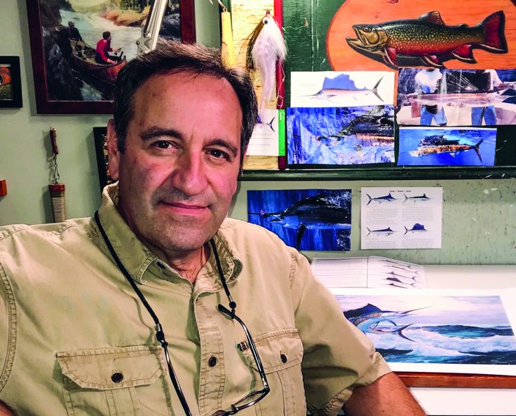 His work was first published in Field and Stream, and he’s since done work for Outdoor Life, Saltwater Sportsman, and L.L. Bean, with prints published by Stripers Forever, Trout Unlimited, and the Coastal Conservation Association.