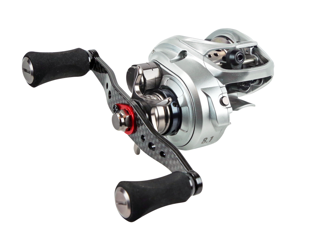 This low-profile baitcaster features a Carbonite drag system with 24 pounds of maximum drag output. It has a rigid aluminum frame and ported spool which, along with the carbon-injected side plates, reduce the reel’s overall weight while boosting its durability. The ported aluminum spool also allows the main line and backing to dry quickly, which enhances casting performance by preventing wear on braided line while also keeping moisture from damaging the reel.