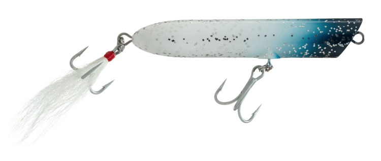 Another long-standing staple—especially to Cape Cod surfcasters fishing the squid run during the 1980’s— Roberts Ranger requires less rhythm to draw strikes from big bluefish. The plug’s aerodynamic and slightly bulbous, oblong shape allows it to soar through headwinds, and a steady to rapid retrieve with the occasional pause will have the lure skitter across the surface, inviting hungry bluefish to give chase as they would to squid in the rips.