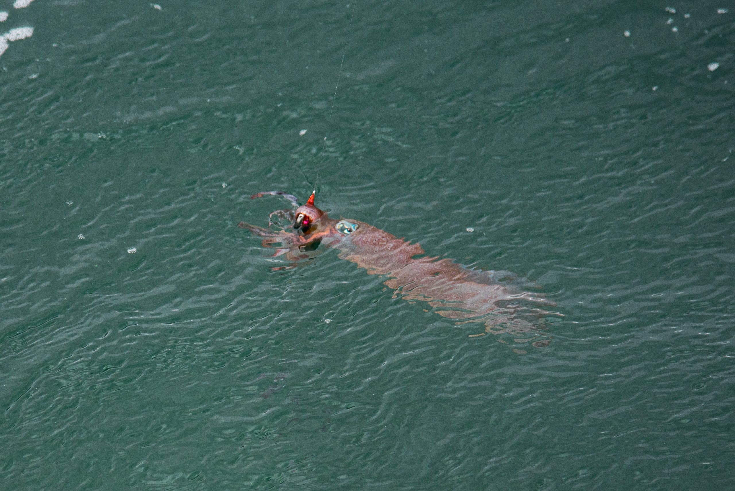 If there’s one thing I’ve learned from watching and imitating the squid-dock sharpies, it’s that when working a squid jig, less is more. The longer the jig remains in the strike zone (usually near the bottom, but not always), the better the odds of a strike. This puts the heavy lifting on the jig itself—to look convincing enough to fool a keen-eyed squid while remaining as still as possible.