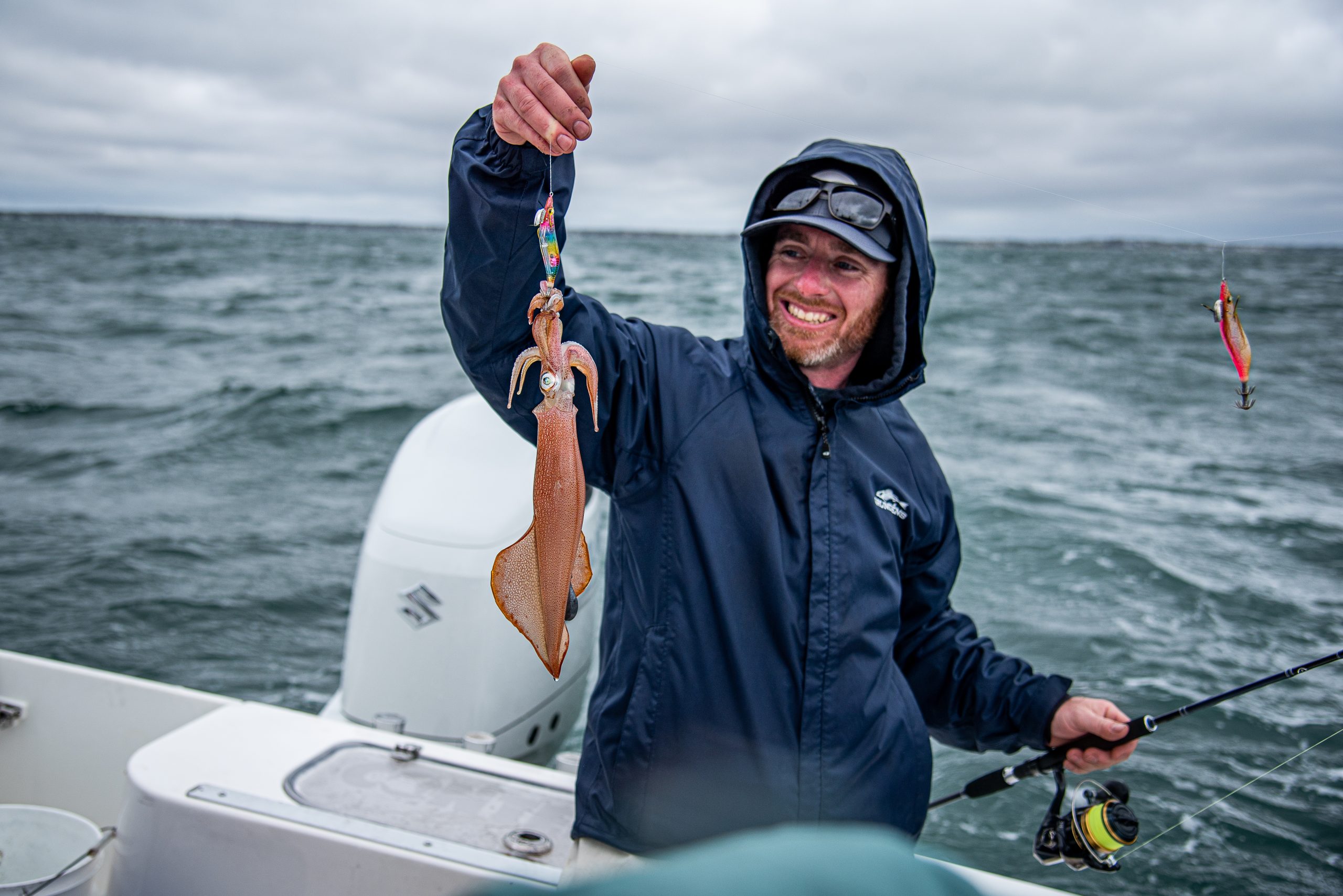 Despite being a lower link on the food chain, the longfin and shortfin squid—the most common squid species in the Northeast—are voracious predators. They hunt down small baitfish and crustaceans that they snatch with their tentacles, wrap up in their arms, and devour with their beaks. This makes them a fun (and sometimes challenging) target on rod and reel, an endeavor sweetened by the promise of a fresh calamari meal the following day.