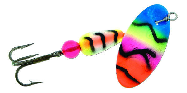 Landlocked salmon were jumping all around me, so I couldn’t blame a lack of fish for my morning skunk. I’ve seen this play out plenty of times before in trout streams and ponds, where picky trout and salmon snubbed everything I threw their way. Getting desperate, I tied on an old favorite with a new spin. The Panther Martin Spinner has been a trout-catching classic since 1958, but they recently introduced a UV series of spinners. I’d largely dismissed UV paint as a trend designed to catch more fishermen than fish, until a landlocked salmon stopped the UV Panther Martin in its tracks. Fish that had already passed up stickbaits, spoons and traditional Panther Martin colors still took a swing at the UV color. That UV Panther Martin has since proven itself on other tough days, and now I’m a believer.