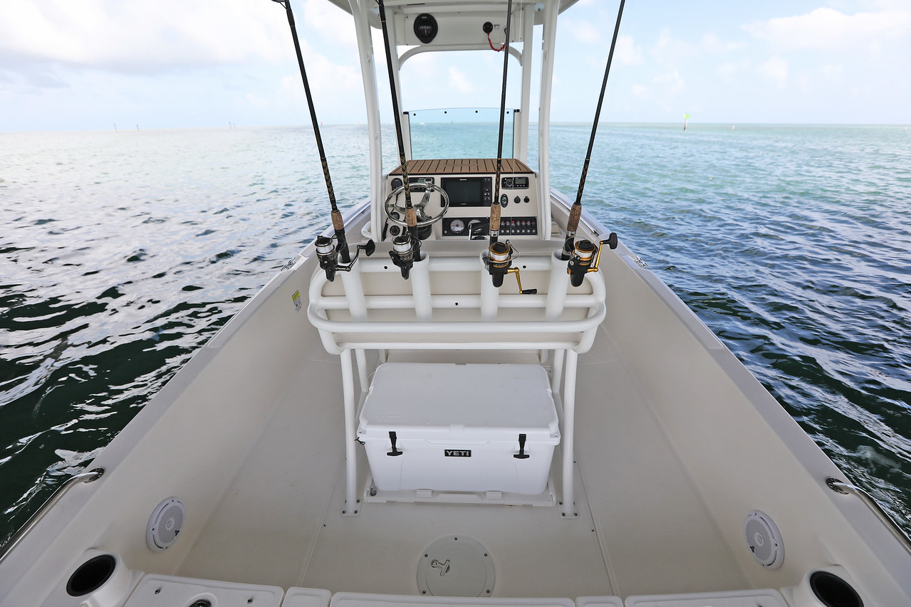 • The raised vantage point of the Pro Angler’s Tower provides uninterrupted, long-distance visibility when searching for bait fish.