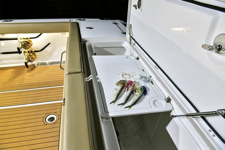After adding desired options, like the teak table and ladder-back seats, carbon-fiber steering wheel, SeaDeck flooring, or full upper station, you’ll be hard-pressed to find something the 395 doesn’t already provide.