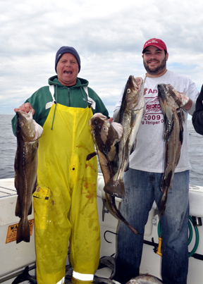 The groundfish bite has been excellent just off the tip of the Cape on Stellwagen Bank. Anthony DeiCicchi and Bobby DeCosta jigged up a cooler full of cod and pollock fillets aboard the Perseverance with Capt. Mike Pierdinock last weekend.
