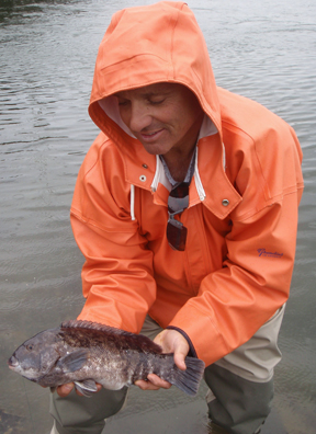 If you read my column in this month’s issue, you may have been surprised and just maybe skeptical at the probability of consistently catching tautog north of the Cape. In fact, a tackle rep friend of mine asked me if I bumped my head and then commented, “Blackfish in Boston, come on!” I love a challenge, but I love tautog from the shore in these parts even more. So, in one of my favorite marshes in the Greater Boston area, I soaked some seaworms and within a half-hour came fast to a tautog. It was about 4 ½ pounds; as small as I ever find in these parts. My fishing window was a short one as I tutored a friend on the finer points of tog fishing and adopted the coaching rather than catching role. I was counting on the infectious grin that comes from an angler’s first encounter with these hard-charging fish and I wasn’t disappointed. I was a little dismayed that the fish were uncharacteristically small until I saw two lovesick tautog of about 7 to 8 pounds apiece roll on the surface a few feet from where we stood, totally enraptured in each other. “No wonder the bigger fish aren’t biting,” I told my friend. Regardless, they are here and if you can pull yourself away from all things striper, you can find tautog too because the next two weeks will be the best time of the year to find them. Most long-term bait shop owners can steer you toward places where they are occasionally caught. I am convinced the “occasional” part is only so because so few fish for them. While I took the tog with seaworms (I was fishing for flounder too), you’ll fare better with green crabs.