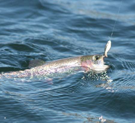 Squid? Don’t see the indicators as yet- the gannets don’t say “squid” as far as I can see…holdover trout are slow and get slower when the “green” trout hit the water….seems like the introduction of stockies sends the wide bodies back to deep water, where slow trolling replaces bait dunlin for the darker-fleshed biggunz….