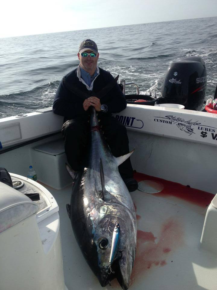 Corey at the Hook Up in Orleans, MA was stoked about the Cape Cod bluefin bite saying lots of fish were caught this week, both by trolling and by casting with spinning tackle. The tuna are still running big with many high 60- and 70-inch fish being caught.