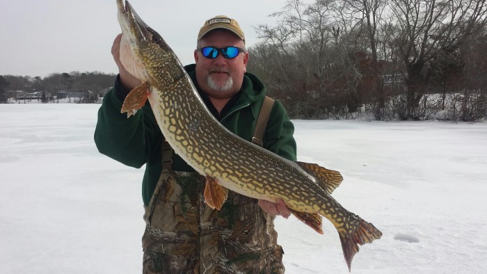 While most last weekend were concerned with the onset of yet another news-making storm, Mike Dumais of Northboro was betting on a pike bonanza at a popular northern spot in Massachusetts. He figured that the snow, slush and lack of access had reduced angling effort to near nil and with a degrading weather front arriving the fish would be on the feed – he figured right! Along with buddies, Brian Hutchinson of Pepperell and Shawn Hennessy of Bridgewater they had a banner day with three double-digit toothies to show for their efforts! The whispered secret about all these storms is that as they wind-up the fishing is fantastic. Looking through my recent library of fishy photos, nary a one has been taking during a sunny day! In case you were looking for an upside to this wicked winter that could be it!