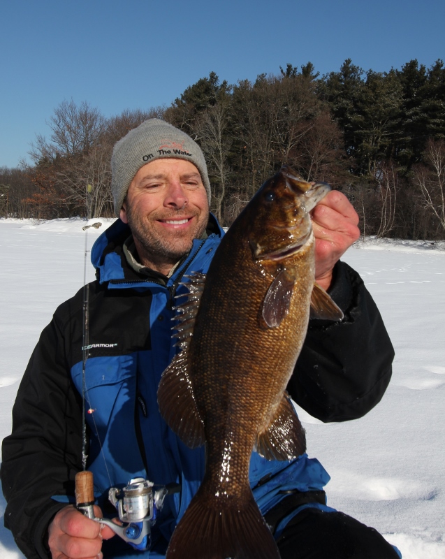 Ronnie, that is one slob of a smallie through the ice. You might have to think about going up one auger size. Good going!