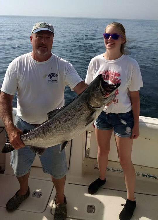 The salmon have arrived. They are still having some finicky days but 100-130 and 220-240 FOW both have been productive bands of fish on their given days. There has been no set pattern as to what they want but the most productive fish have been well below the thermocline. Along with the kings Steelhead and lakers have both been mixed in with the catches.
