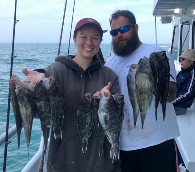 Capt. Kenny Namowitz on the Mimi VI out of Point Pleasant Beach said the fishing has been super with boat limits of sea bass along with winter flounder, cod and ling. Even though there are lots of boats and anglers around, there’s plenty of fish to catch. Monday’s trip saw an added bonus when a thresher was hooked and brought aboard along with all the sea bass.