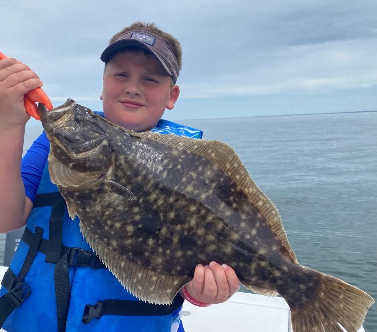 Chris Elser’s grandson Colton with a nice doormat they caught last weekend.