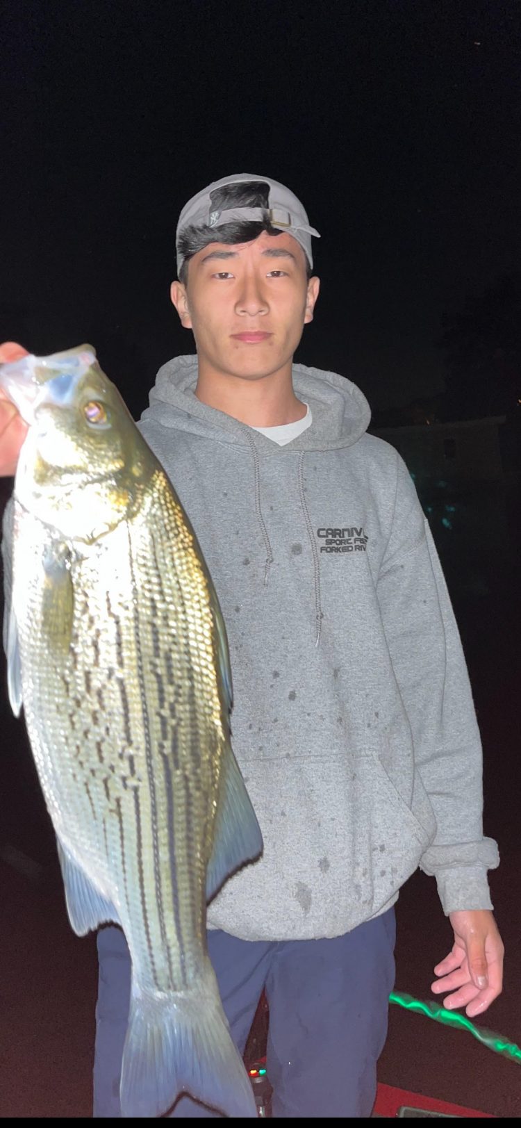 (Above) Giglio’s Bait and Tackle regular Jon I. with a monster bass he caught from his kayak off Long Branch on a Ben Parker flutter spoon earlier this week.