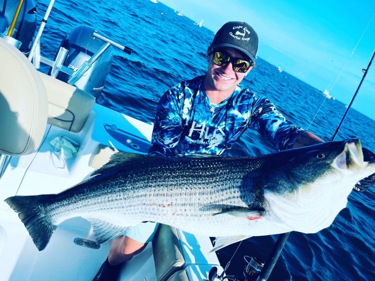 Captain Ross of Cape Cod Charter Guys reports another week of crushing them in Plymouth. Sticking to his guns has put big fish in the boat like the broomtailed beast pictured below. Although, he is wary that stormy nights and high winds may shuffle the large schools of bait and bass. He has also seen a productive striper bite on the Outer Cape not far from shore.