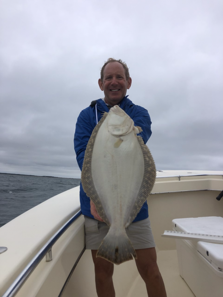 Above, father/son duo Joe and Troy Hurwitz battled cloudy conditions for some keeper fluke aboard Fishsticks Charters earlier this week.