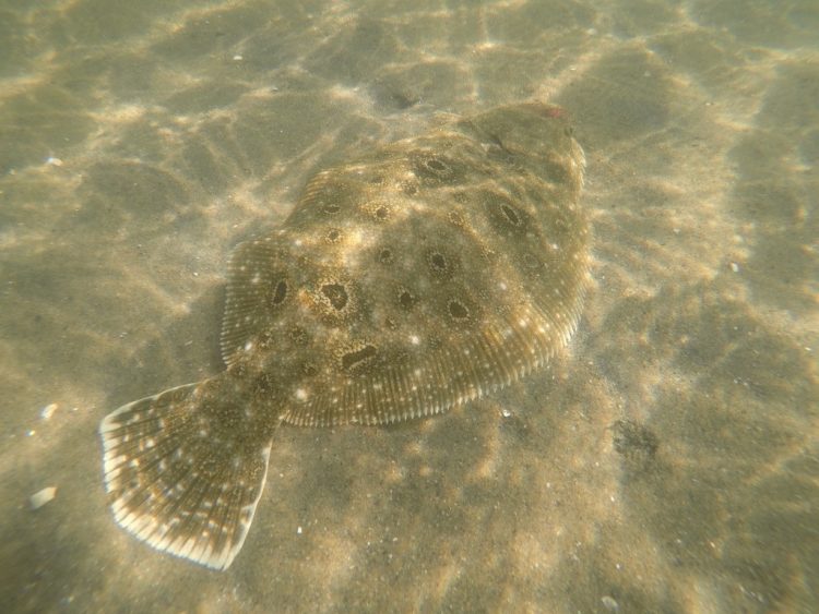 At this point in the summer, warm water flats hold much more than just striped bass. Matt also encountered a handful of keeper fluke on his evening escapades. Just look at the masterful mimicry these fish possess; they can hide easily but when they choose to shed their sandy cloak they eat with aggression!