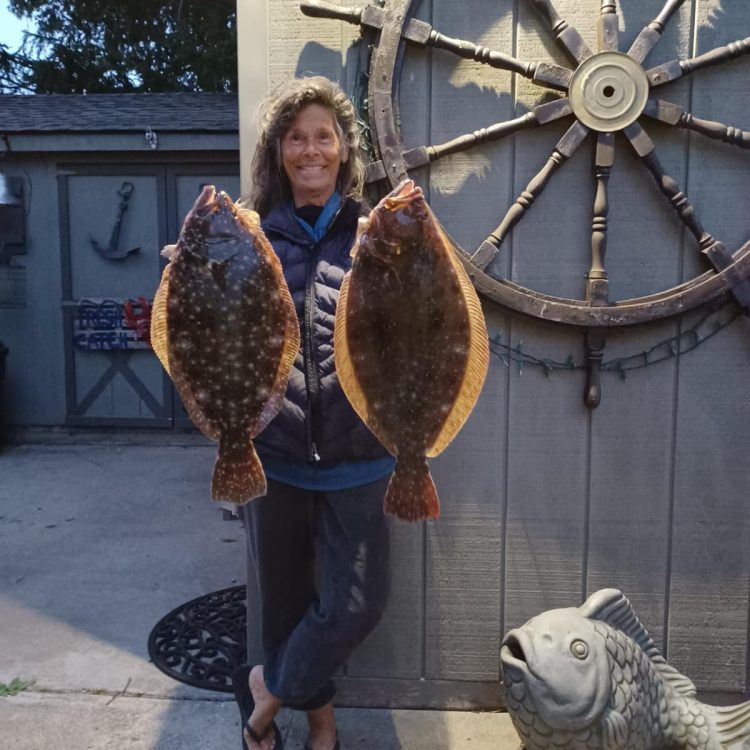 “Still some nice Fluke around! Bonnie Glennen caught two beauties this past week, and the largest was 4.5lb. Capt Ian of Bon-E charters put her on the fish! Green and white Spro bucktail with fluke belly and Bay Park Spearing got them to bite toward the last of the outgoing tide.”