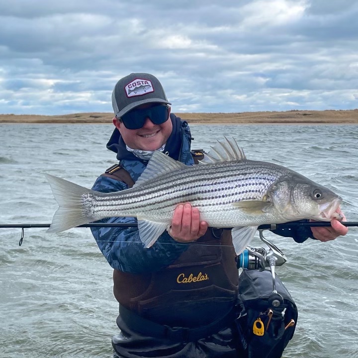 (Above) Stavros Viglas of Martha’s Vineyard shared this photo of a pretty looking winter holdover striped bass he caught in a Vineyard salt pond this past week.