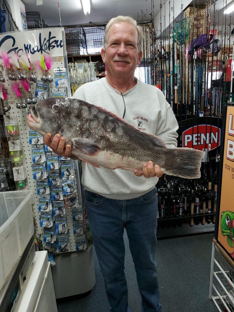 “Tog fishing has been picking up out front, and there’s a good run of schoolies on Jones Beach this week biting bucktails and Little Neck Poppers if you catch them at the right time. There have been some good blackfish coming up from the reefs, but we had a 7.35-pound tog brought into the shop this week that was caught from one of the nearby bridges. Out on the wrecks there have apparently been a couple nice cod mixed in, too. If you’re looking for a few more stripers under the belt in 2022, and you need a Christmas gift, we just got MagicTail surf rods in and we’ll be getting a bunch from Jigging World very soon, so swing by the shop!”