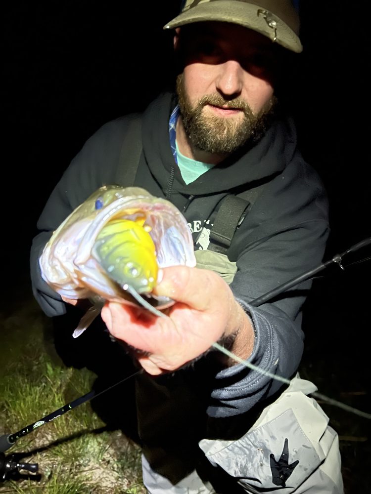 Real quick, I’d like to touch on the freshwater fishing on Cape Cod as well. With big bass preparing to bed for the spawn, they are active and on the move. My buddy Jack has been out there almost daily finding fish from 3 to 4 pounds regularly. He says that even when throwing big swimbaits at night, the bites are coming much closer to the shore than they have all spring, indicating that the bass are staging around shallow flats and transition areas to feed at night. What is a transition area? Any change in structure or bottom contour; it could be a well-defined weed line that begins on the end of a sandy flat 50 feet from shore, or it could be a steep ledge that bass use as an ambush point for any bait passing by. Bottom line is, while there is plenty of good saltwater fishing to be had right now, there is also a high likelihood for sticking a personal best largemouth (or smallmouth) with swimbaits, wake baits and glide baits this time of year.