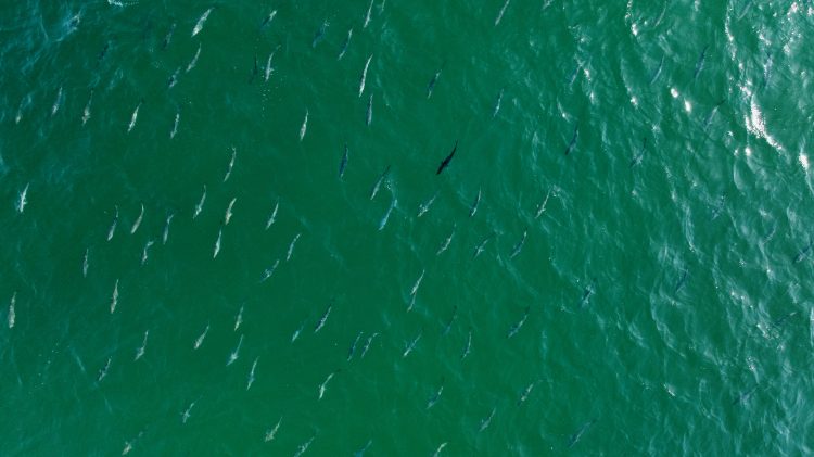 This week began with one of the most amazing fishy sights that I’ve ever seen. Clear water inundated the shoreline and I gazed into it, hoping to spot a passing striper or two. The water clarity remained pretty much the same throughout the entire week. As I look at the water now, it’s pretty typical compared to every other day: up front there’s a brown tinge in the waves that’s somewhat translucent, and then about 15 yards off the beach there is some incredibly clear blue green water. When the wind isn’t terrible, this water makes its way all the way to the beach; as the waves crash and the white water forms, the foam is this incredible color, almost too beautiful to describe. The aquamarine cascade looks rife with oxygen, and there seems to be no doubt that fish are right underneath it. When I see water that clear, it’s not even a question, the drone comes out immediately. Some wind and chop will always impede my camera’s view, but the resulting picture can be incredible nonetheless.