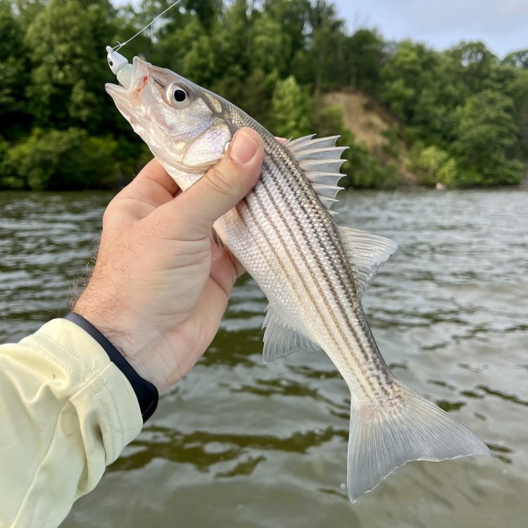 Trolling these same edges with umbrella rigs, tandem-rigged swim shads, or bucktails dressed with a sassy shad or curly tail with sufficient weight to get them down to where the fish are holding. A small spoon behind a planer can also be effective and a lot easier to reel in. The daily limit is one striped bass per person per day measuring from 19 inches to 31 inches in Maryland waters. In the tidal Potomac the daily limit is two striped bass per day per person, and the slot size is 20 inches to 31 inches.
