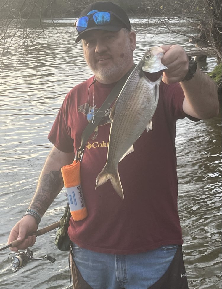Anadromous shad are still making their spawning runs in favored rivers, including the Potomac, Patuxent, Occoquan, and Rappahannock. Last Friday, we experienced a dynamite morning, in a cold downpour nonetheless, on the upper Patuxent hooking into American shad (see photo). They hit a 1/16oz stump-jumper jig again and again. Our advice—try to hook into them before the run finishes any day/week this month.