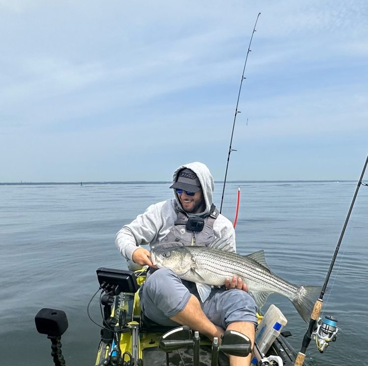 The conditions this past weekend were fantastic, and I was treated to a morning topwater bite after witnessing stripers rising up on bait, tails in the air and slapping the water on the way down. I immediately reeled in the tube and worm I’d so faithfully relied upon this Spring, and threw a Yo-Zuri hydropencil directly at the spot I saw the striper boil up from. Before I could even stand up in my kayak and start working the lure, it rose and grabbed the pencil. My first cast that day and I was rewarded with a slot-sized striper. It doesn’t get much better than that!