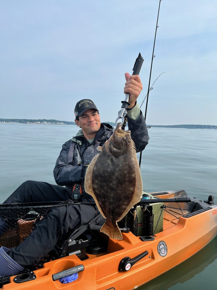 Matt, at Black Hall Outfitters in Westbrook told me that the late spring/early summer run is finally in full swing. Big striped bass have arrived in better numbers, although it’s not always easy to get them to chew. Tide, clouds, wind, rain, fog, boat traffic, and your bait are all factors that can dictate your success on a given trip. Live bunker is still the key to unlocking a strong bite regardless of conditions, but the fish are becoming more eager to hit topwaters, glide baits, and weightless soft plastics. The bunker have filtered into the area nicely, but it’s moving around a lot, so it could be hard to locate from day to day. Fluke fishing is starting to pick up locally, including a 7 pounder caught by Tedy Bruschi in shallow water on a recent kayak trip with Matt! Keeper flatfish have shown up as shallow as 25 feet, but the sweet spot seems to be 35 to 40 feet.