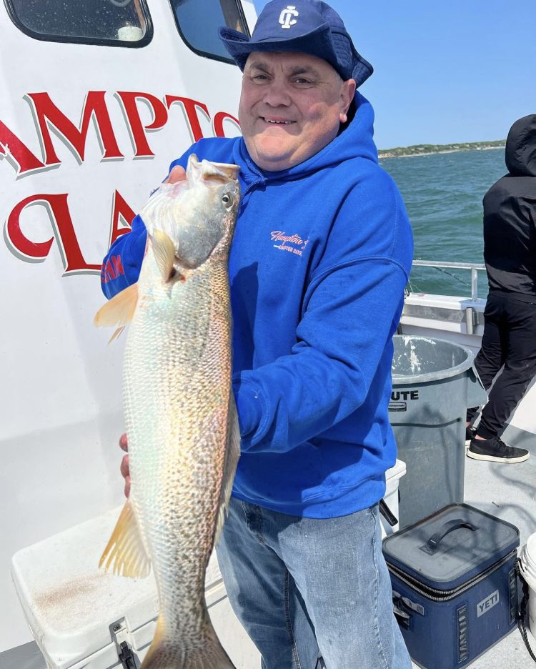 “Weakfishing is the best it’s been since the 1970s. The average weakfish being caught in the peconics is 4-10 pounds. The striper bite has been good and consistent as well on the bayside. Giant bluefish have been getting caught from Shinnecock Inlet to Montauk Point, and around the point all the way to the Shinnecock Canal. It’s mostly big gator blues too. There are so many that it can be tough to get down to the weakfish.