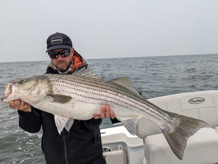 “Yesterday was wild in the smoke, with plenty of bluefish hitting topwater presentations. Dolphins showed up to chase my stripers away, and a surprise Atlantic sturgeon popped up right next to the boat! Never know what you’re gonna see out here.