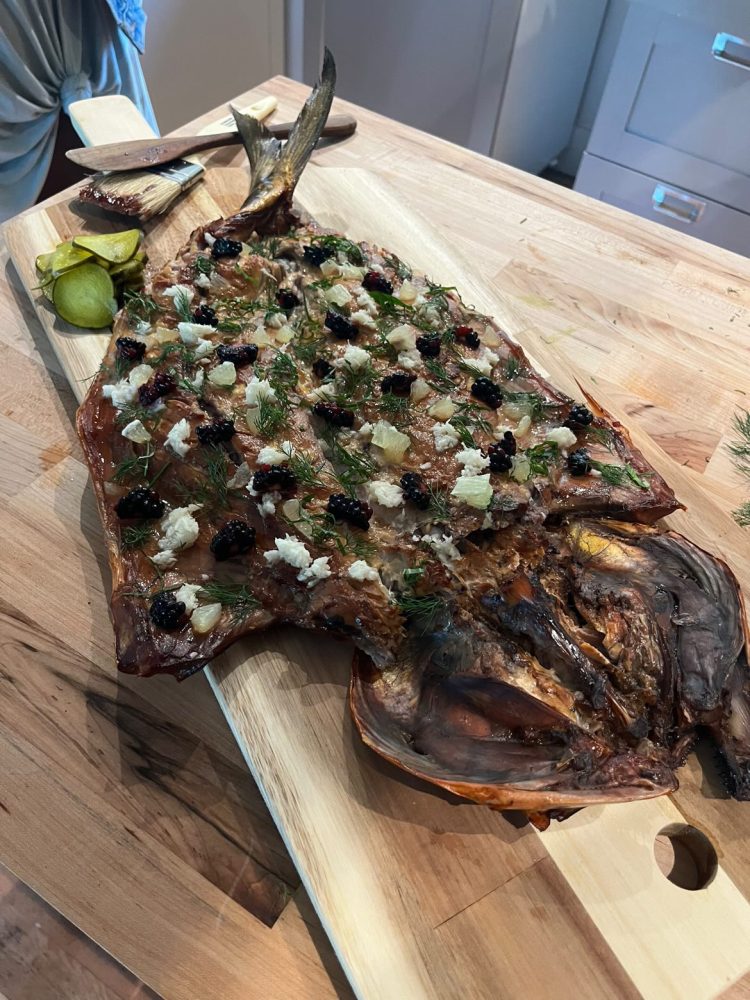 - Butterfly and debone fish, put in homemade brine for 24 hours.