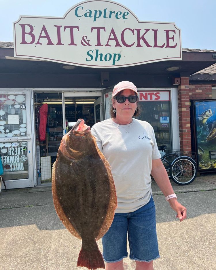 “Lots of folks have been catching fluke dinners right here off the pier. Paul and his boys were able to take home a 5.2 pounder that ate a baited spearing. Lori caught herself an 8.8 pound doormat on the Captree JIB VI earlier this week. One angler sent in a video of a long line of albacore tuna brought to port. On another note, Fire Island inlet was recently dredged, and the transit is much better than it was. The lowest depth that SeaTow GSB read was 15 feet about a third of the way through the outgoing.”