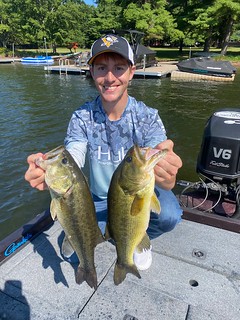 Fishing for largemouth bass is good in a variety of water environments, from the smallest farm ponds to our largest reservoirs and tidal waters. The summer behavior pattern is much the same wherever largemouth bass are found – feeding during the low-light evening and through the night into early morning in shallow areas where food can be found near grass beds. They then seek cool shade during the heat of the day.