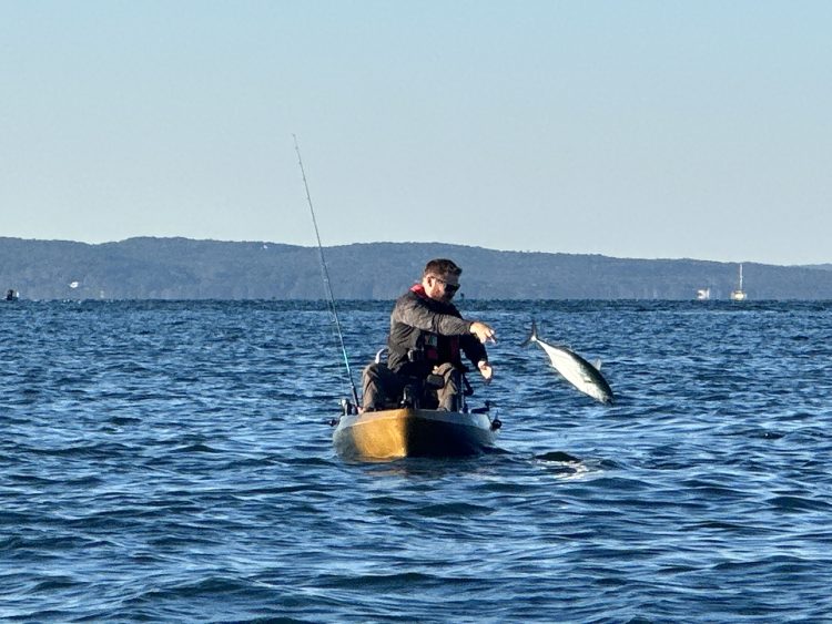 For chasing albies, I prefer the kayak; but, even with the stealth and access it provides, I’ve found them to be particularly picky this season. OTW’s Zack Zeytoonjian had the opposite experience on Wednesday. He went 13 for 16 landing albies from the kayak in about 2 hours of fishing. That’s a banner day. In hopes of a repeat, we jumped in the yaks this morning with my buddy Ryan Henry, and each hooked up just as the sun rose above the horizon. That would be my only albie of the day, but Zack and Ryan each tied into a couple more. There were even some small bonito in the mix, which revealed themselves with quick, shallow leaps out of the water.