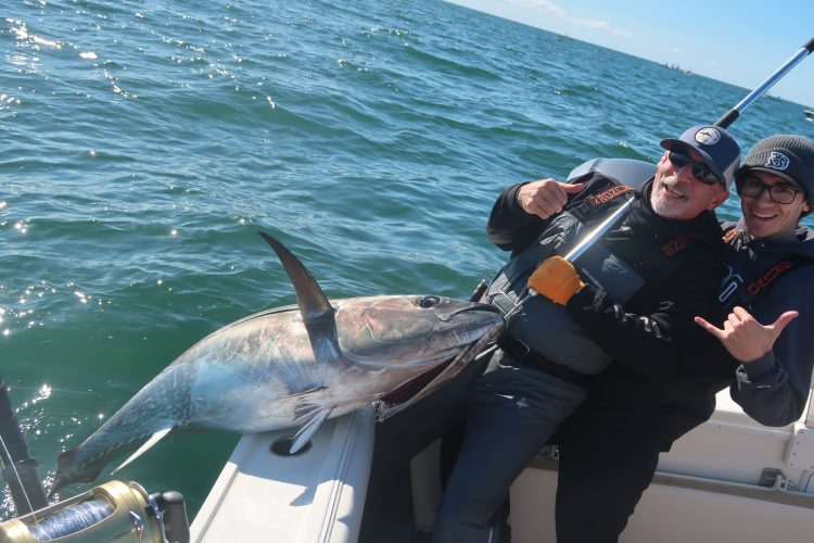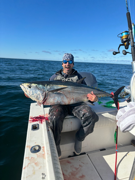 “We have been on the stripers steady and strong in Cape Cod Bay. The bluefish are still here with them, just not in the huge numbers like we had early in the season. When we were fishing for stripers with our typical bass gear, we got smoked by a huge bluefin tuna in less than 5 seconds. Only a few days left in the season and we want to than all the people that have supported us this year! We’re looking forward to finishing the season strong.”