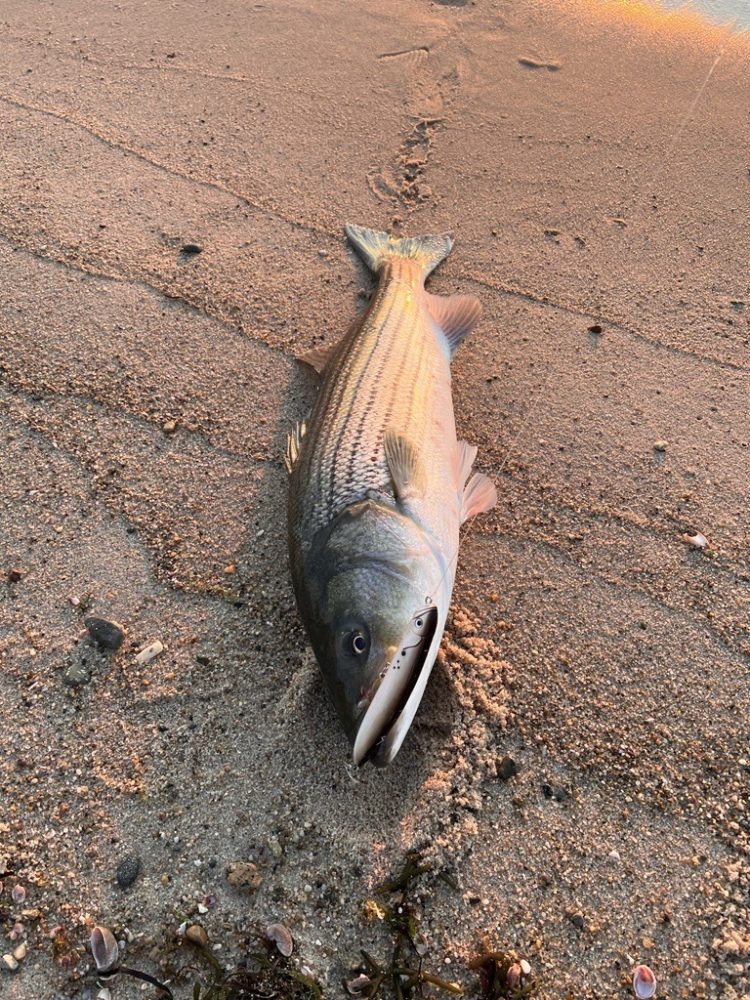 If mullet are to stick around, the bass fishing on the south side could remain good through the weekend too. I found that the best action is happening between first light and late morning, so if you have even an hour to spare, there’s potential for a nice topwater session. Birds will help you find the fish. Fish the areas in close proximity to inlets and river mouths for the best chance at getting bit, and if topwater doesn’t work, a basic swim shad from Tsunami, Storm or even a Z-Man HerculeZ will dupe a mullet-eating bass. As of Monday morning, there were plenty of stripers from 22 to 32 inches roaming along Vineyard Sound beaches, and with the amount of bait I was seeing, I doubt they’re going anywhere—especially with this unseasonably warm, sunny weather we’re experiencing as I write this.