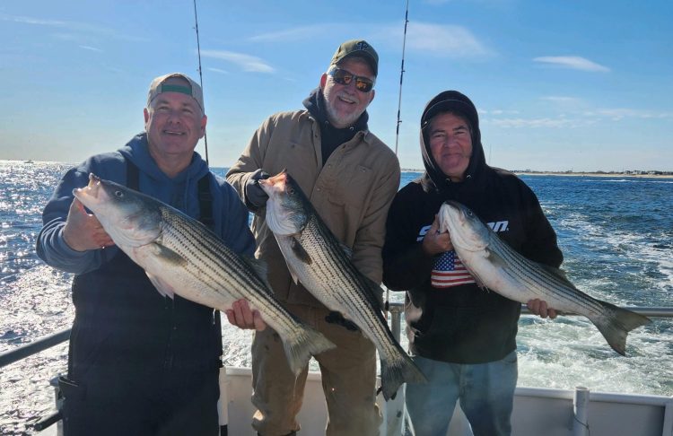 Johnny O. at Fisherman’s Den in Belmar said it’s all about stripers for party and charter boats out of the marina. The boats were clustered right outside the Shark River Inlet most of the day on Wednesday. Blackfishing has been good at the inlet and the shop is getting ready for the five-fish tog season opening up next Thursday, Nov. 16.