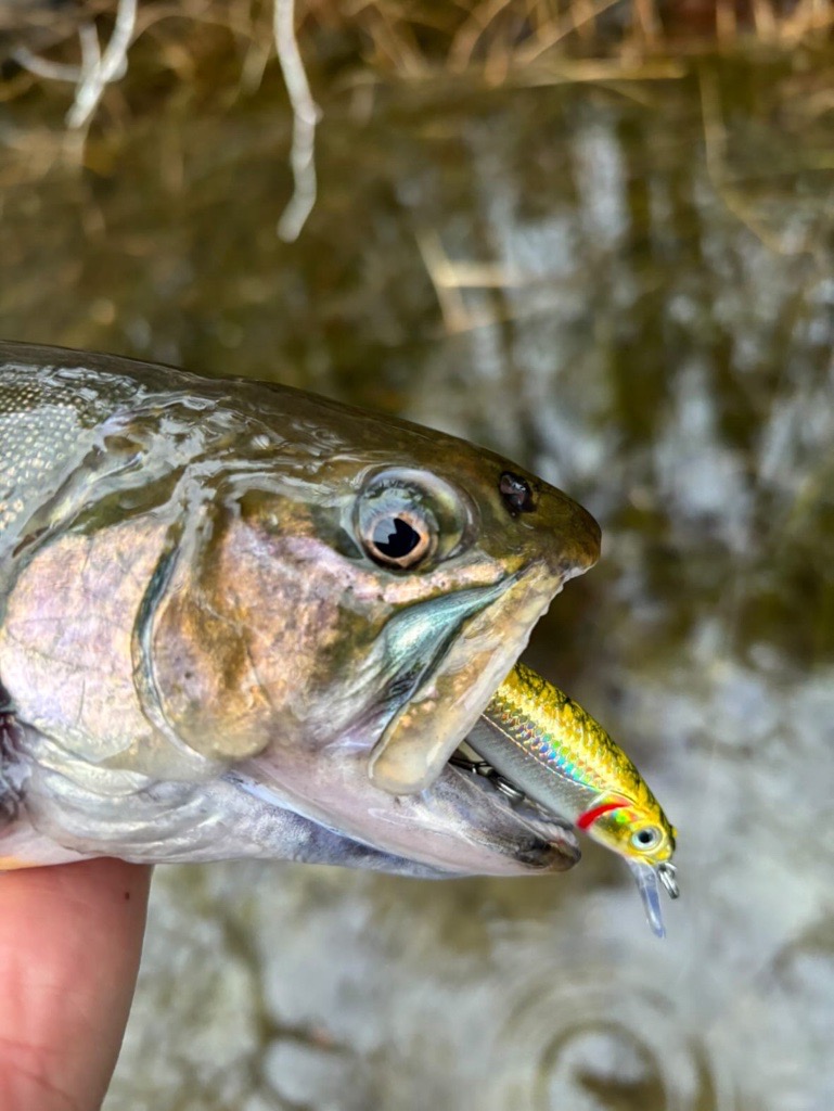 Those Baker Lures swim great, they have a loud rattle, bright color schemes and, most importantly, they’re an appetizing size for trout.
