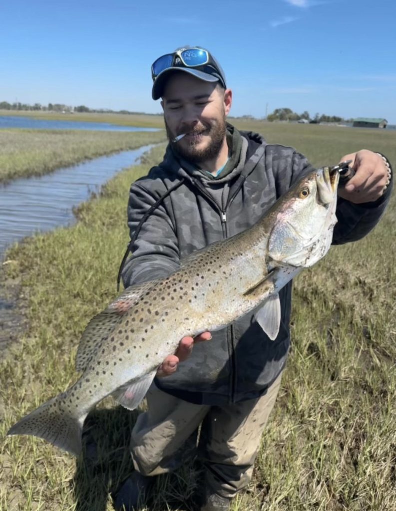 “Speckled trout and gator bluefish are showing up here in Ocean City both in the surf as well as in the back bays! Stripers are still around too but they’re mostly schoolies or under 28 inches, however, a few bigger ones are being caught in the surf. Hopefully this spring bite is finally starting to heat up for us. It was a slow start down here, but it’s getting better!