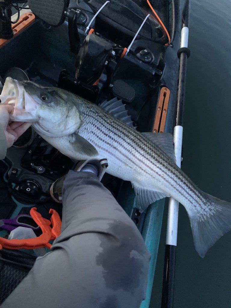 Captain Ben Sussman of In The Net Sportfishing reported that he’s been on a good striper bite while fishing the worm hatches from the kayak, but he’ll begin running charters for the season come Memorial Day weekend. Give him a call to check on his availability and book a trip!