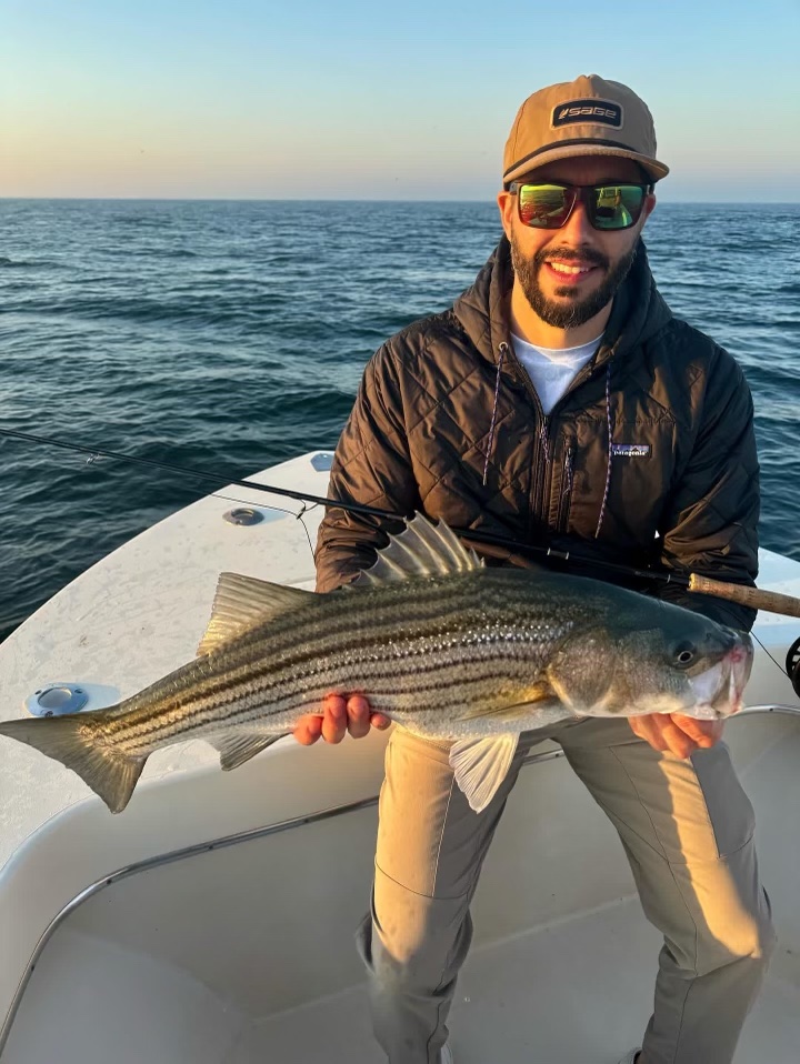 Captain Timothy O’Rourke (@mtkpointflyfishing) in Montauk reports: “Fishing has been very good, plenty of large striped bass up to 38 inches on the fly rod and there are plenty of bigger fish around. I have limited availability on weekends but the sunset/evening trip has been solid and productive, so reach out for availability.”